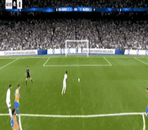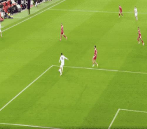第43分钟,贝林厄姆在禁区线附近连续盘带,突然起脚,皮球直钻死角,皇马半场结束就已经3-0领先了。